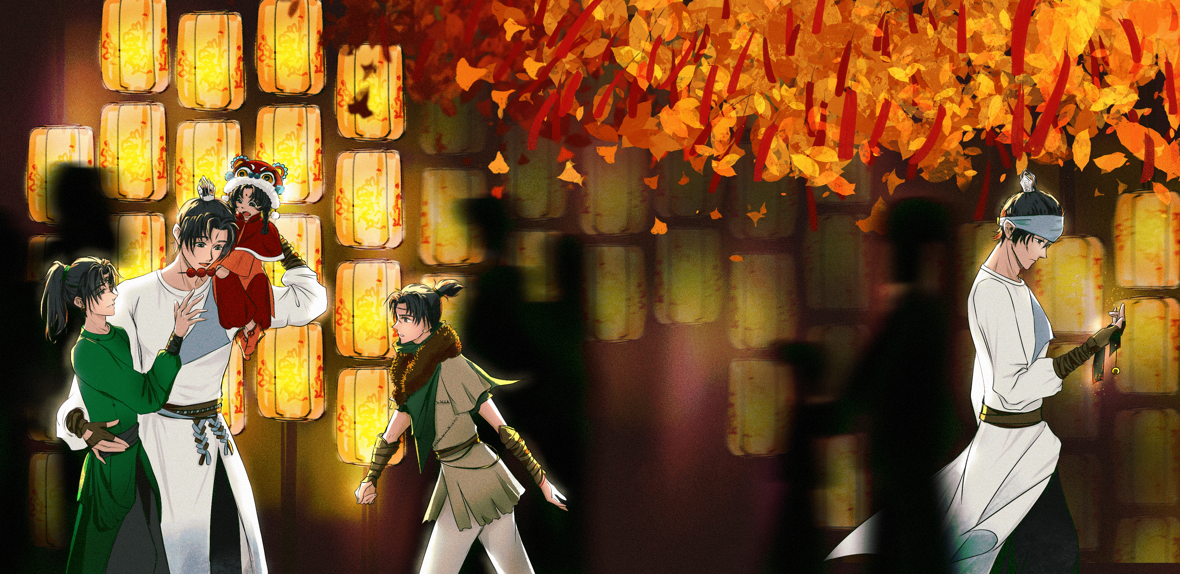 At the temple gate, Chen Xiang and Yang Jian were also slowly making their way there, then stopping by the roadside, appearing as if they hadn't waited long. Huanjiu eventually perched on Yang Jian's shoulder, holding up oily little hands to feed him snacks, while Chen Xiang seemed to be chattering about something. The young boy paused inside the temple, gazing at the familiar faces of this family of three, feeling both envious and longing, yet also constrained and hesitant.