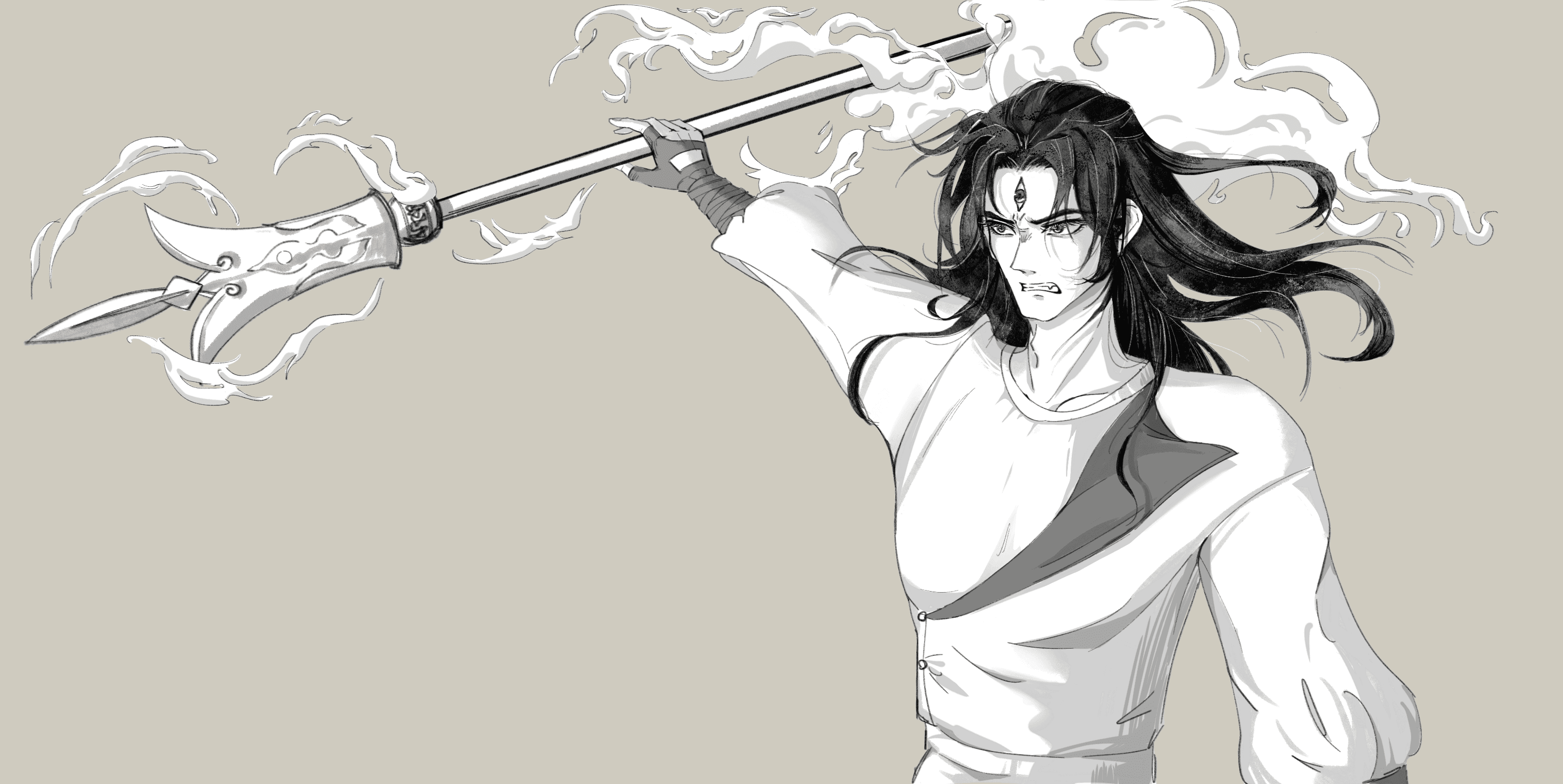 A whirlwind rose around him, his heavenly eyes widened, the silver crown on his head transformed into a double-edged blade, and his black hair scattered in the wind. This madness seemed to carry the momentum of annihilating everything.