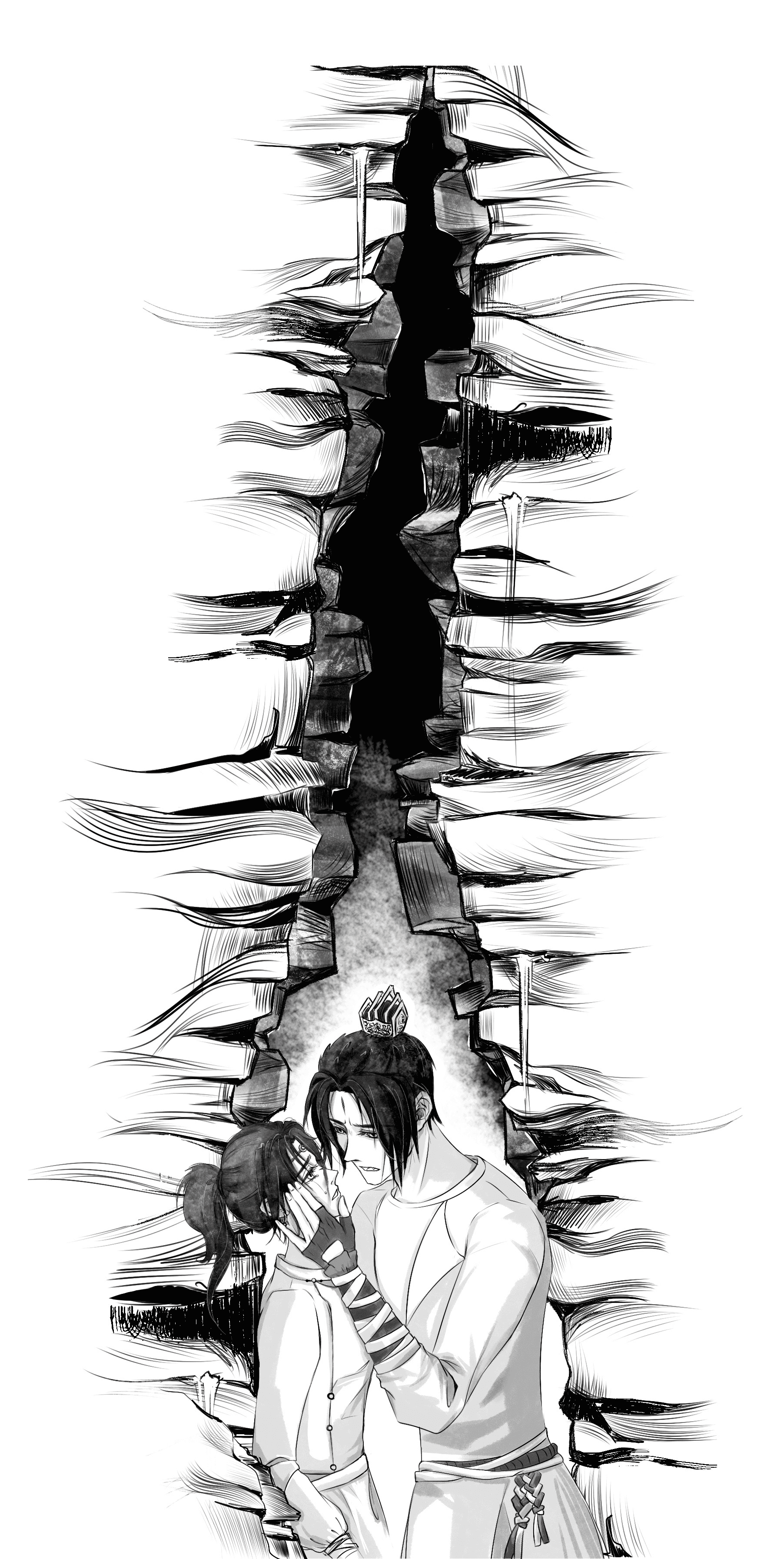In this narrow gap where even turning around was difficult, Chen Xiang felt that the divine fingers touched his lips, the face was leaning close to his face, the person in front of him offered a kiss to the one he held dear in his heart.